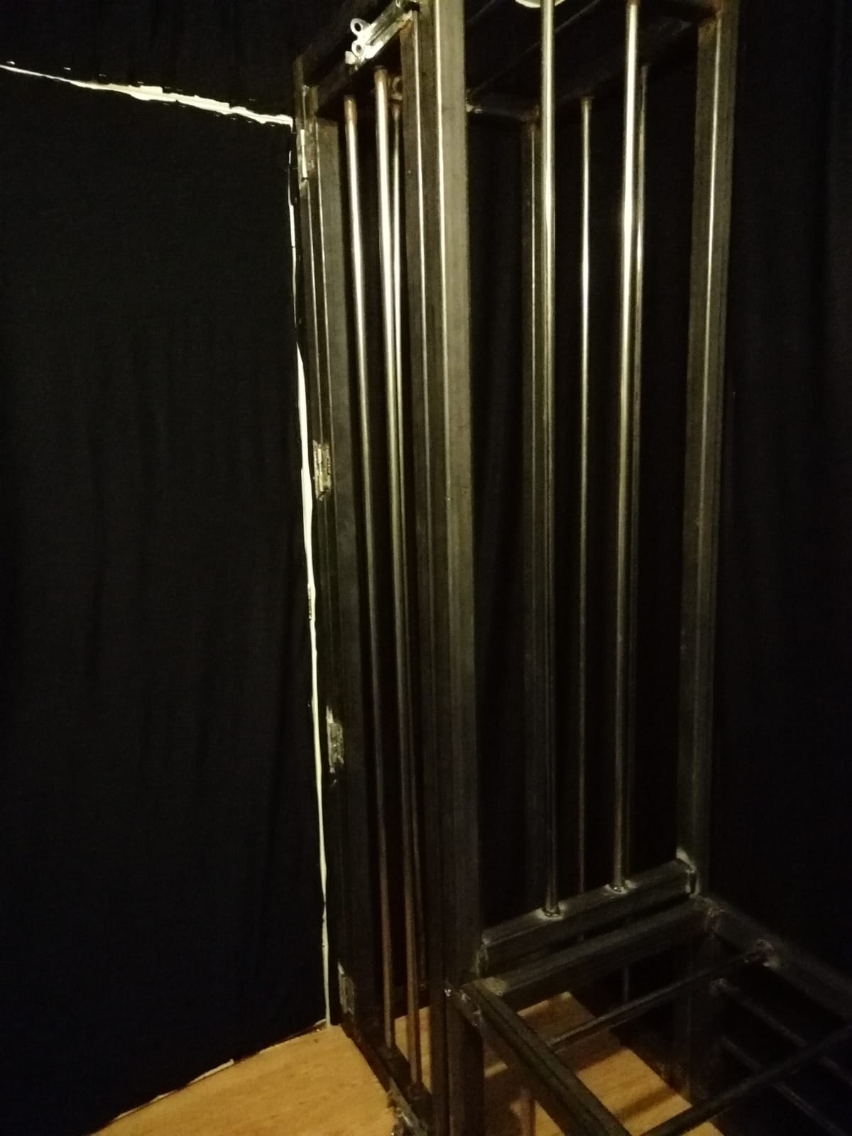 We have a steel, locked, cage ready for naughty boys or overnight accomadation, standing or laying, maybe your choice